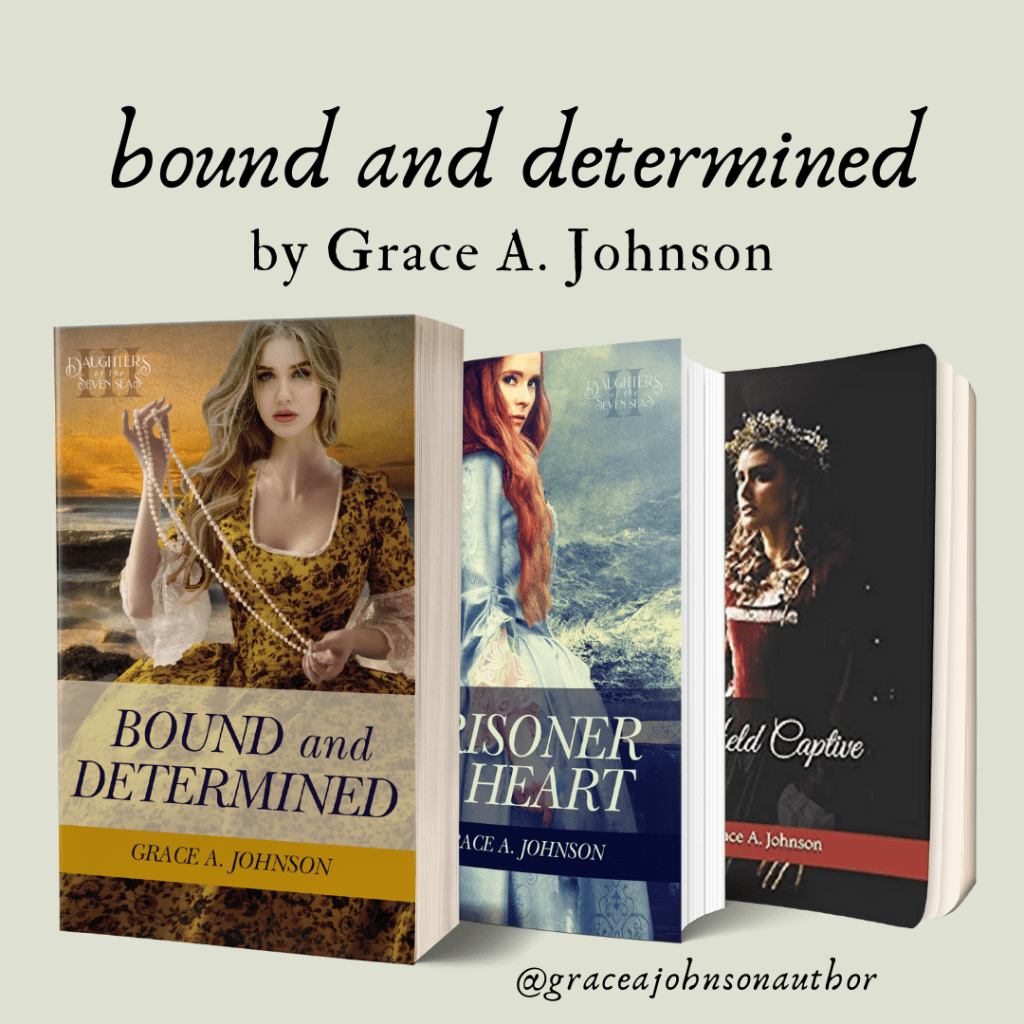 What are you most excited about for Bound and Determined? Which character are you most intrigued by? What is your favorite DOTSS cover so far? Do you have a favorite era for historical fiction? Are there any Christian pirate romances you’ve read before? (Pro tip you never asked for: when you read BAD, make sure to grab a box of tissues, a fan, and a pillow to muffle any sobs – or even laughs – into. Just sayin’.)