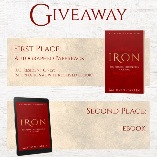 Today I’m interviewing Carter from Madisyn Carlin’s Christian fantasy/fairytale retelling Iron! (Guys, I LOVE Carter and this interview was sooo much fun to do!) First up, we have some book information, giveaway news, then the character interview! Enjoy!