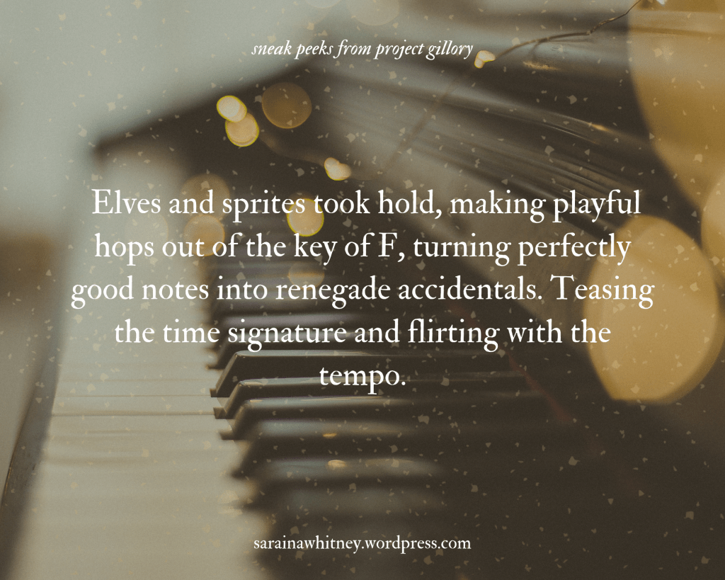 This is from a scene where Gillory is improvising on her church’s piano. It was SO fun to write – there’s just something I love about describing music in poetic, metaphorical imagery. Which is what I did here. 🧚♀️