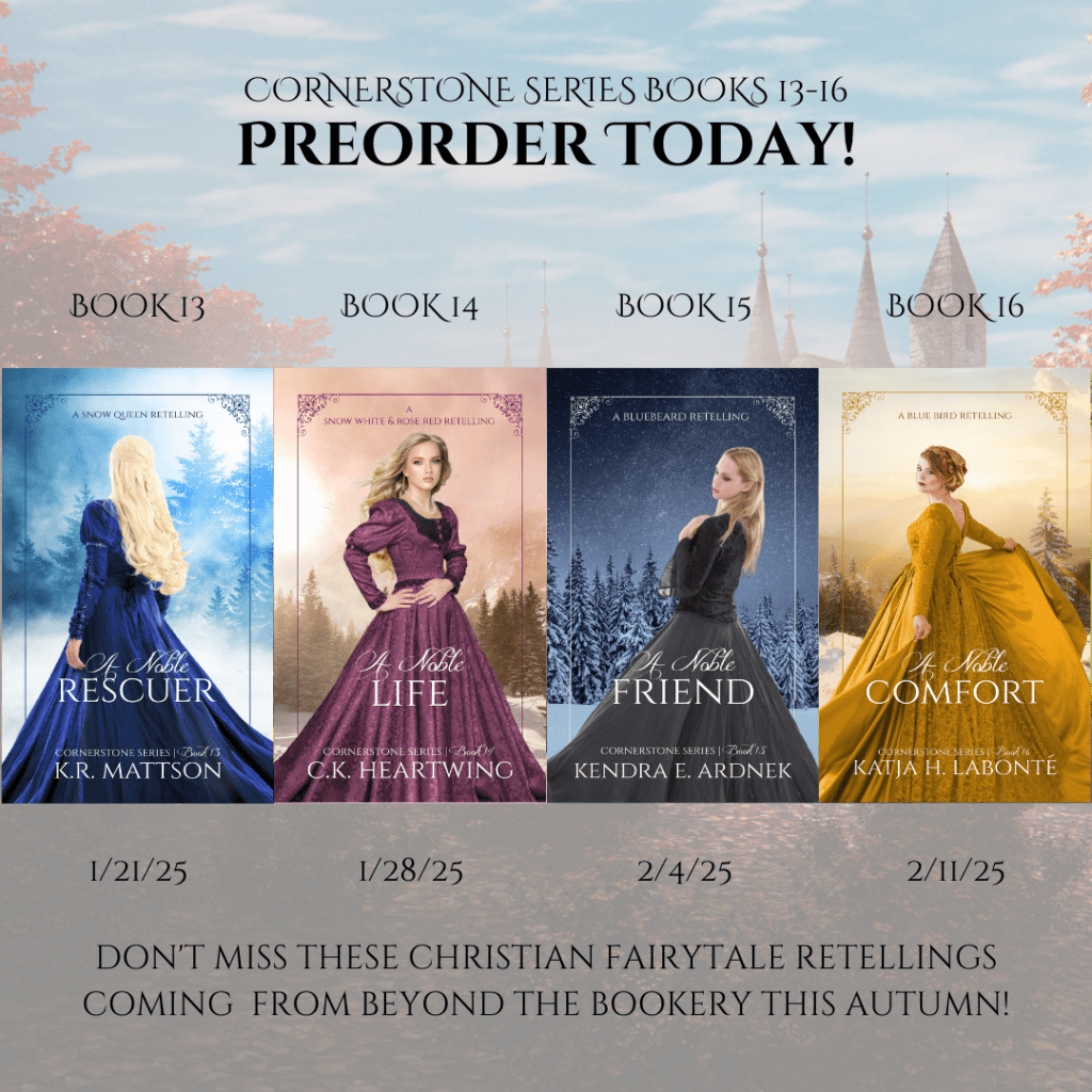 16 Christian fantasy fairy tale retellings filled with faith, clean romance, danger, and courage from authors Laurie Lucking, Kirsten Fichter, E. G. Bella, Jewel Windall, Saraina Whitney, Rachel Kovaciny, Abigail Kay Harris, Madisyn Carlin, Lucy Peterson, Anna Augustine, Olivia Godfrey, Kendall Hoxsey, K. R. Mattson, C. K. Heartwing, Kendra E. Ardnek, Katja H. Labonté