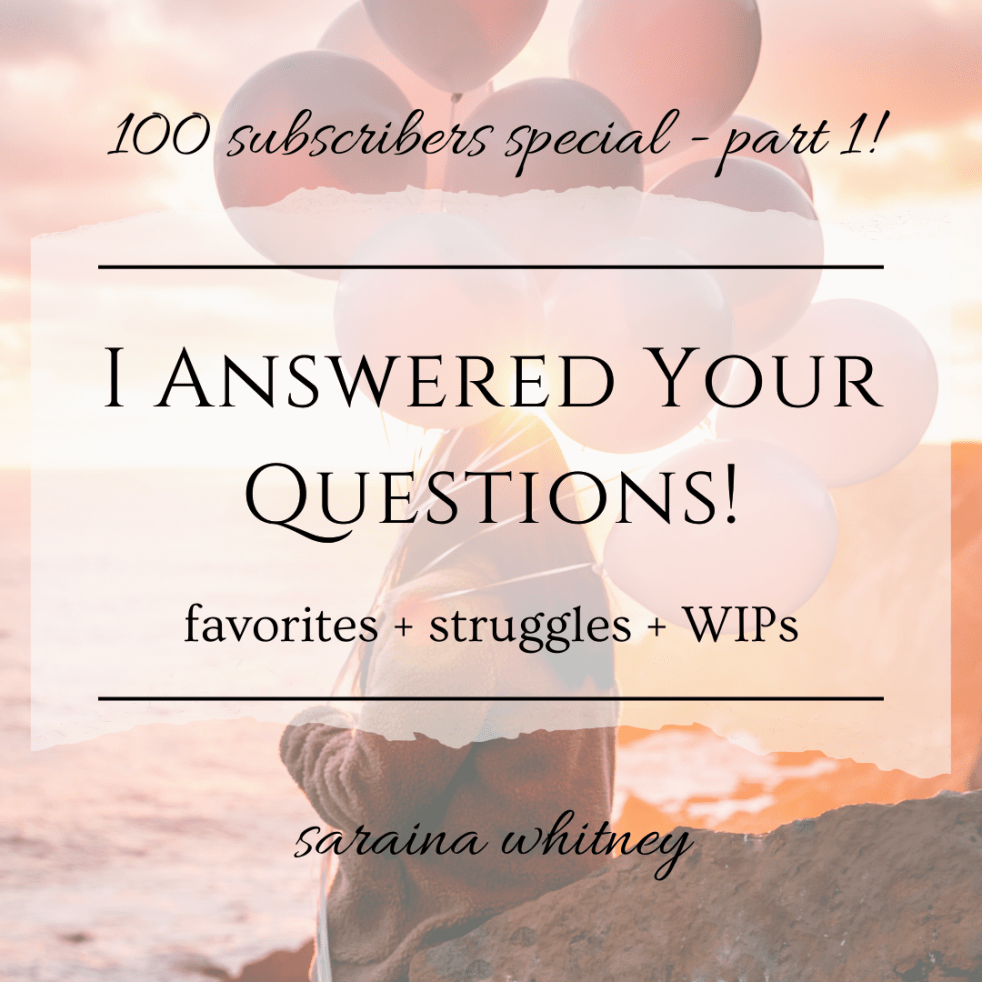 You probably wonโt remember this, but a few months ago, 16 of you sent in some of the best questions ever for my 100 subscribers celebration. AND TODAY I FINALLY ANSWERED THEM. Yes, this blog surpassed 100 subscribers!!! ๐๐โจ Thank you all so much for all the support and love you've given me!!! <333 (In… Continue reading I Answered Your Questions – 100 Subscribers Special! โจ (favorites + struggles + WIPs)