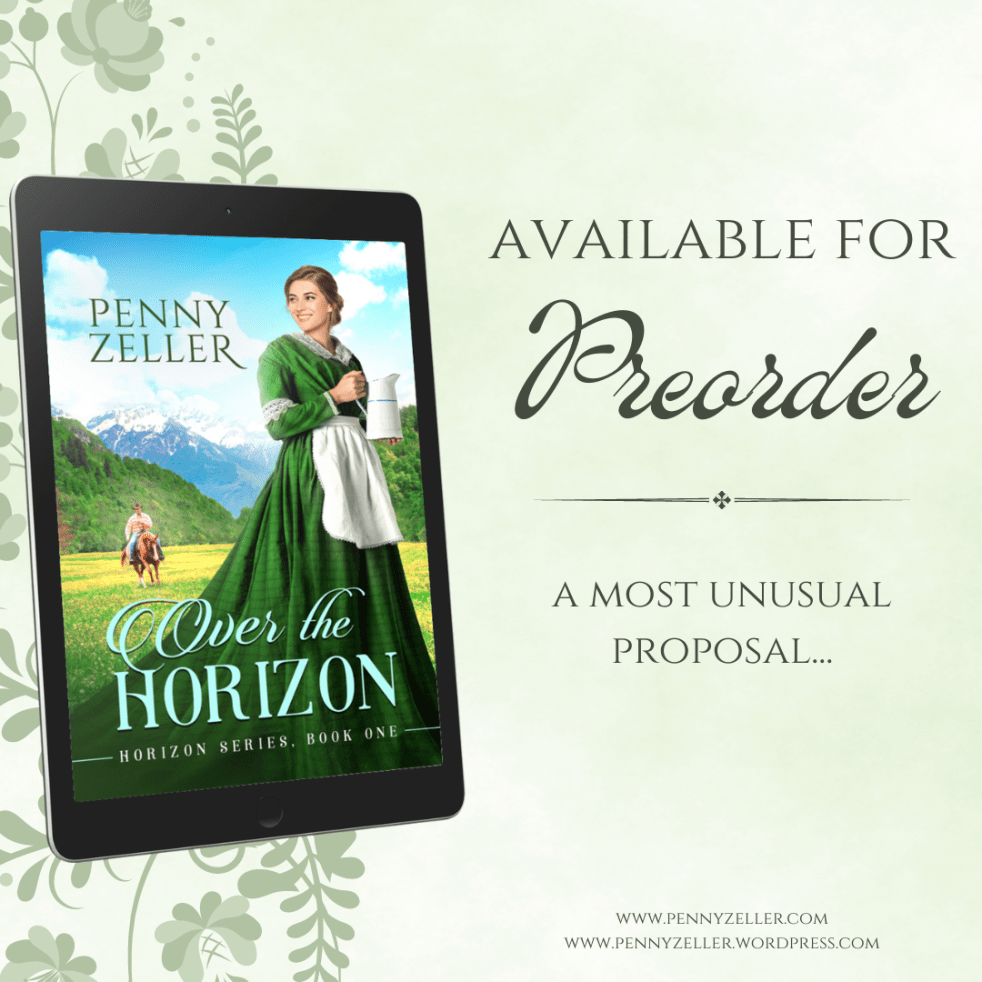 Penny Zeller's new Christian historical romance Over the Horizon releases July 18th, and you can be one of the first to preorder it!!! πβ¨ About Over the Horizon! A most unusual proposal... Alone in 1870s Idaho Territory, Paisley Abbott has nowhere to turn. With no other options, she finds herself consenting to an unconventional, but… Continue reading Preorder “Over the Horizon” by Penny Zeller! (sweet Christian historical romance)