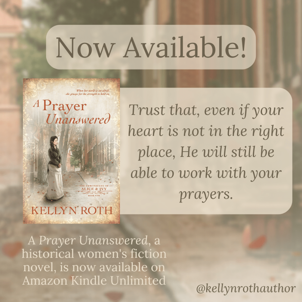 Kellyn Roth's newest book A Prayer Unanswered releases today! A Prayer Unanswered is the fifth book in her "The Chronicles of Alice and Ivy" series! (Don't ask why I want to write "Alice and Icy" every single time. 😂 ) I'm reading The Dressmaker's Secret (first book in the series) and can't wait to be… Continue reading A Prayer Unanswered